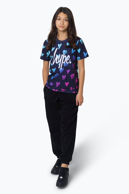 Hype Girls Multi Scribble Hearts T-Shirt