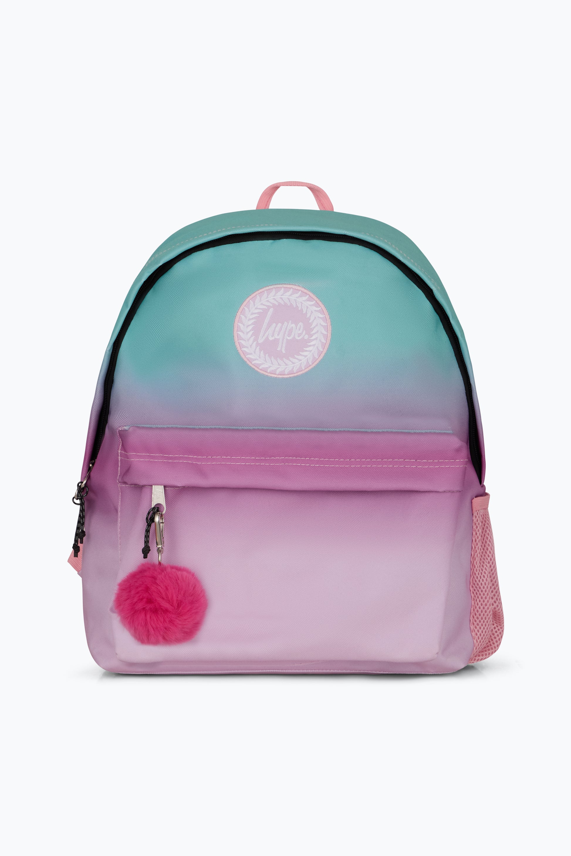 The roomy main compartment fits all their school essentials with ease, while the front pocket keeps smaller bits ready to grab. Comfy padded straps ensure an all‑day fit, and the mesh side pocket is ideal for a water bottle, keeping you hydrated on the go. Finished with a fluffy pink pom‑pom charm and the iconic HYPE crest logo, this backpack is the definition of cute‑but‑cool.