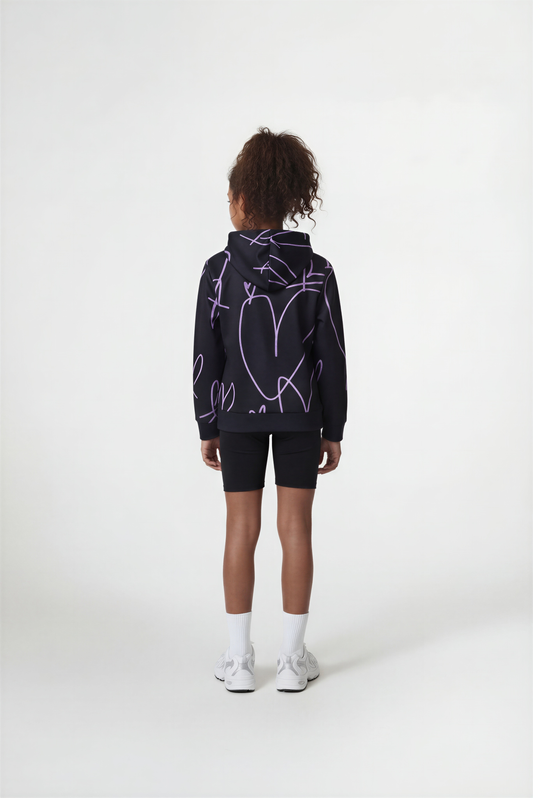 Hype Girls Black Scribble Hearts Hoodie