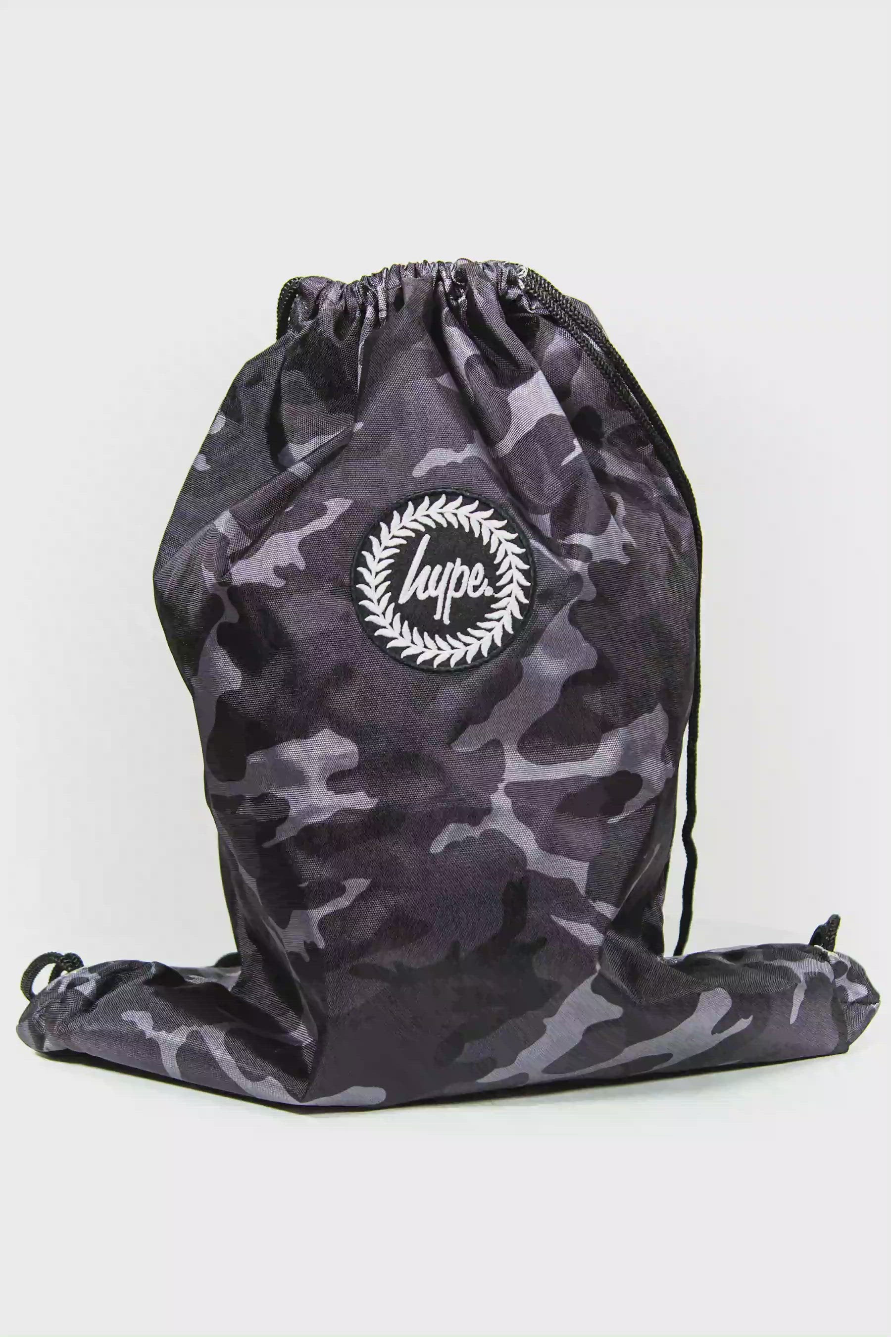 Hype Black & Grey Mono Camo Drawstring Bag